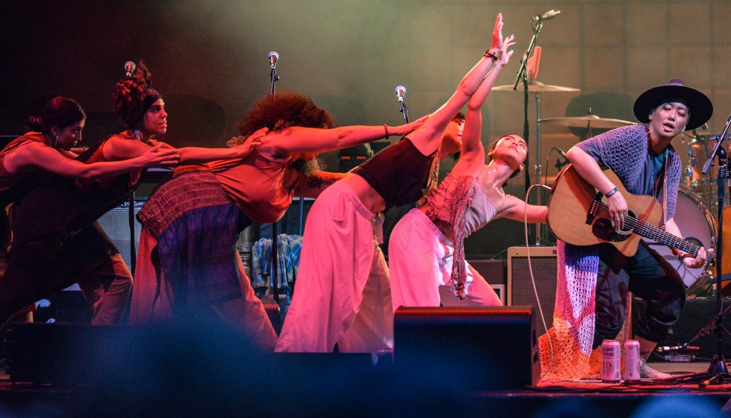 The evening’s festivities were started off with an artist to whom I was not at all familiar with, treya lam. lam who happens to be a member of the musical collective Resistance Revival Chorus is a multi instrumentalist performer and composer who took the stage solo but quickly informed the crowd that they brought along a couple of collaborators since they just didn’t feel like being up on the stage all alone. Well moving forward, we in the audiance were treated to a beautiful set of mostly (I believe) new material which treya is working on. The material included accompaniment from modern dancers, additional singers, a mixed media presentation and of course lam on guitar, piano and violin. The theme of the current project (according to lam’s website) which they call “otherland” is an interdisciplinary grief ritual and chamber protest album that explores grief as a catalyst for radical empathy, intersectional solidarity and repairing our relationship to the earth. Nonetheless, their set was not only beautiful but incredibly moving. treya will be appearing at Joe’s Pub on October 26th and I highly recommend chcking them out.