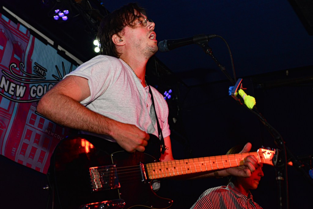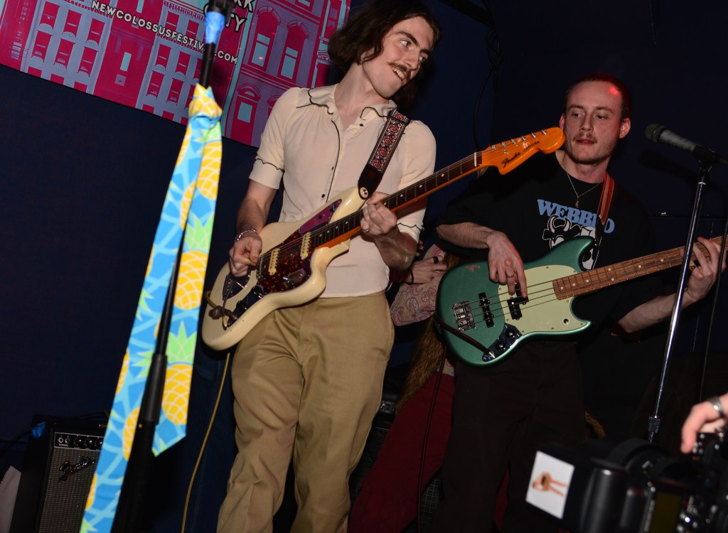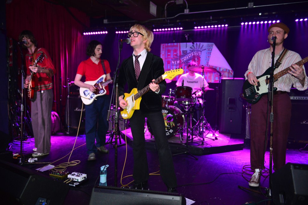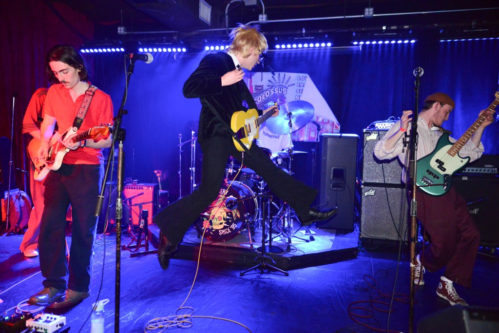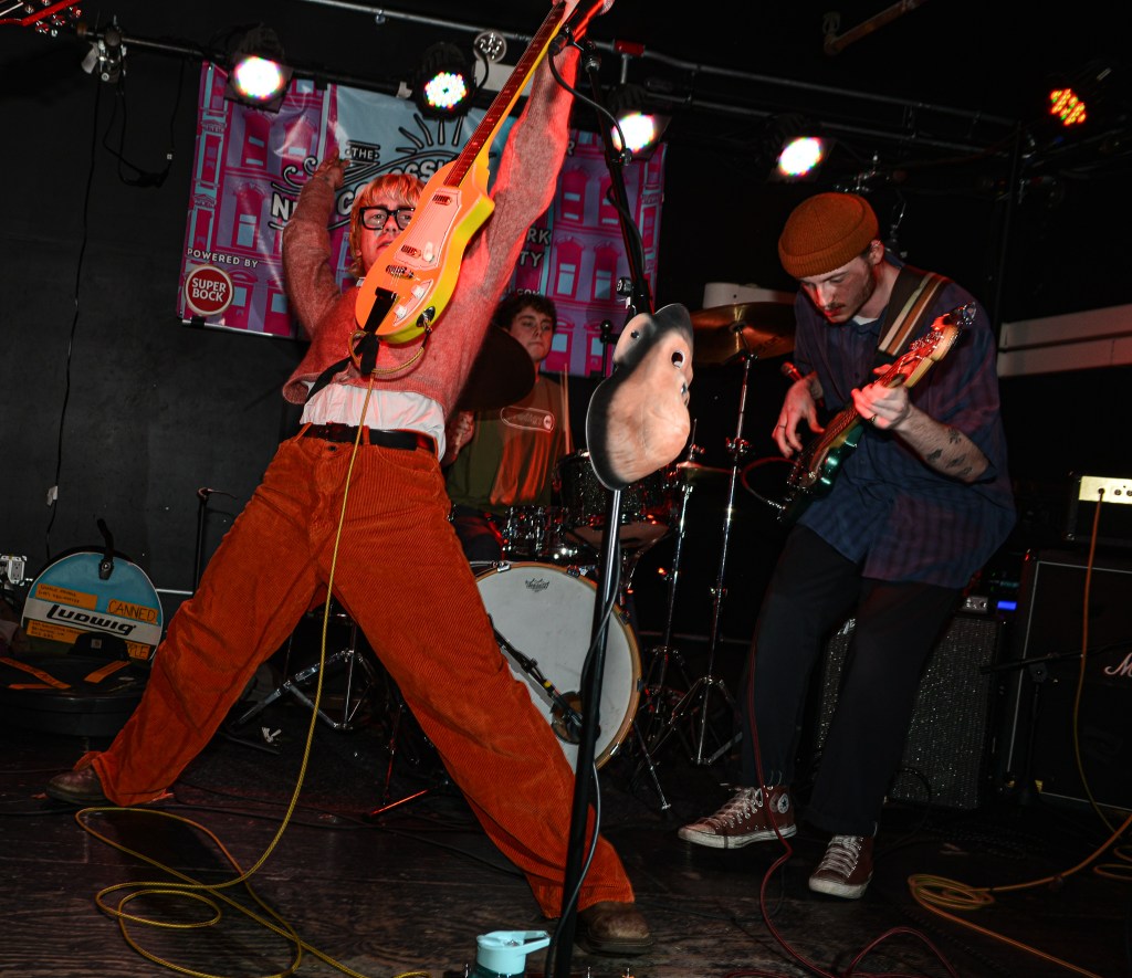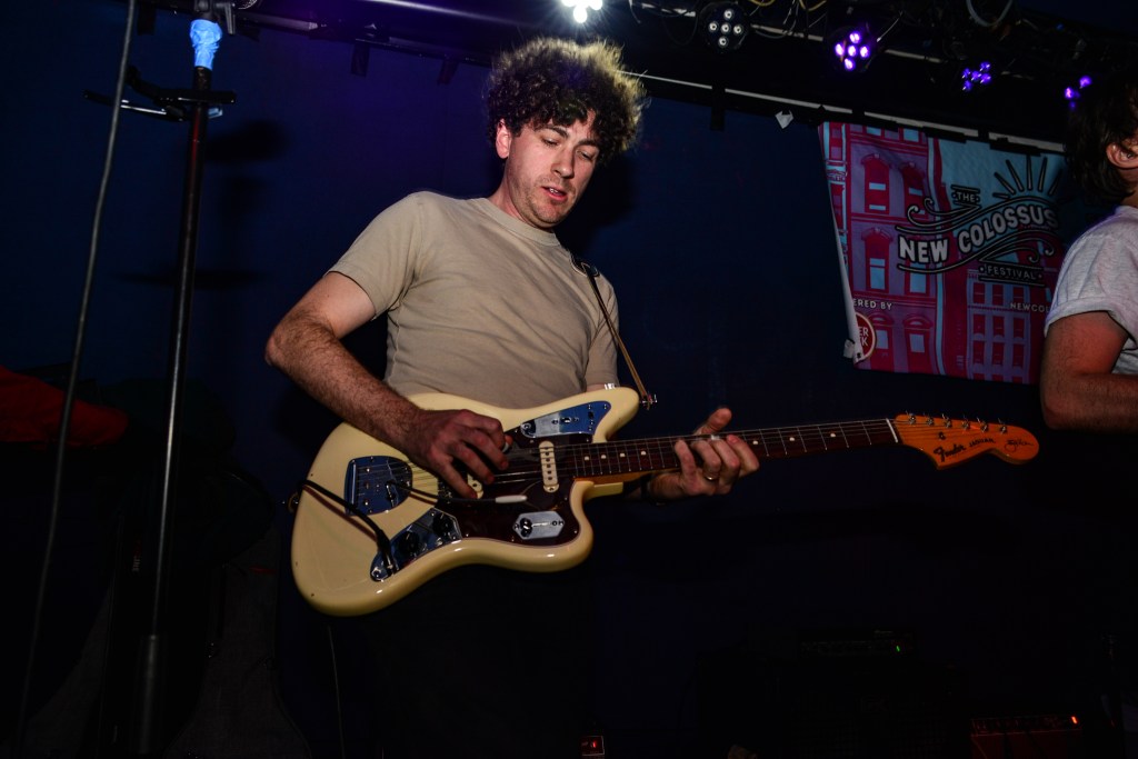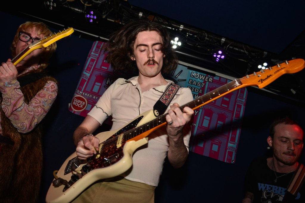 I would close out my Saturday with Ducks LTD, a jangly power pop kind of band out of Canada which I’ve been longing to catch for quite some time now but largely due to their being booked to play VERY late sets here in New York whenever they come around, I’ve missed. So seeing that they were playing a few sets at this year’s New Colossus brought a huge smile to this guy’s face. Ducks would prove not to disappoint at all. Ironically, with a new album, Harm’s Way having just been released, they opened up with “How Lonely Are You” and “Old Times” off of their previous album, Modern Fiction from 2021. Truth be told it wouldn’t be until the 5th song of their set before they would get to anything from the new album. None of which mattered to the ecstatic crowd which were eating up every crunchy note put forth from The Ducks. Enigmatic lead singer, Evan Lewis proves to be a great frontman with his energetic shimmying and unique nasally voice. Of course what would a classic power pop band be without pitch perfect harmonies and Lewis along with partner in crime Tom McGreevy delivered in spades. All in all their set proved to be a master class in the crunchy jangly power pop craft.