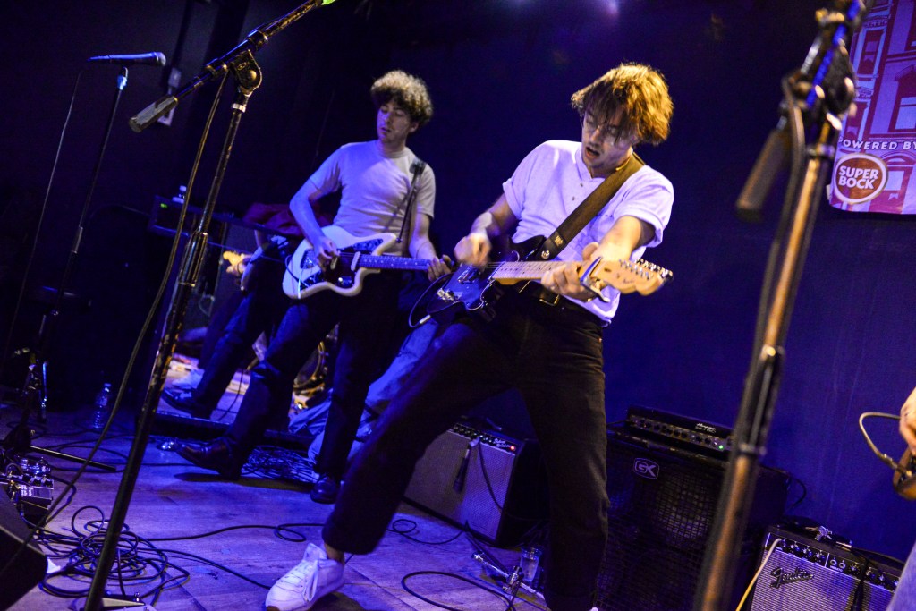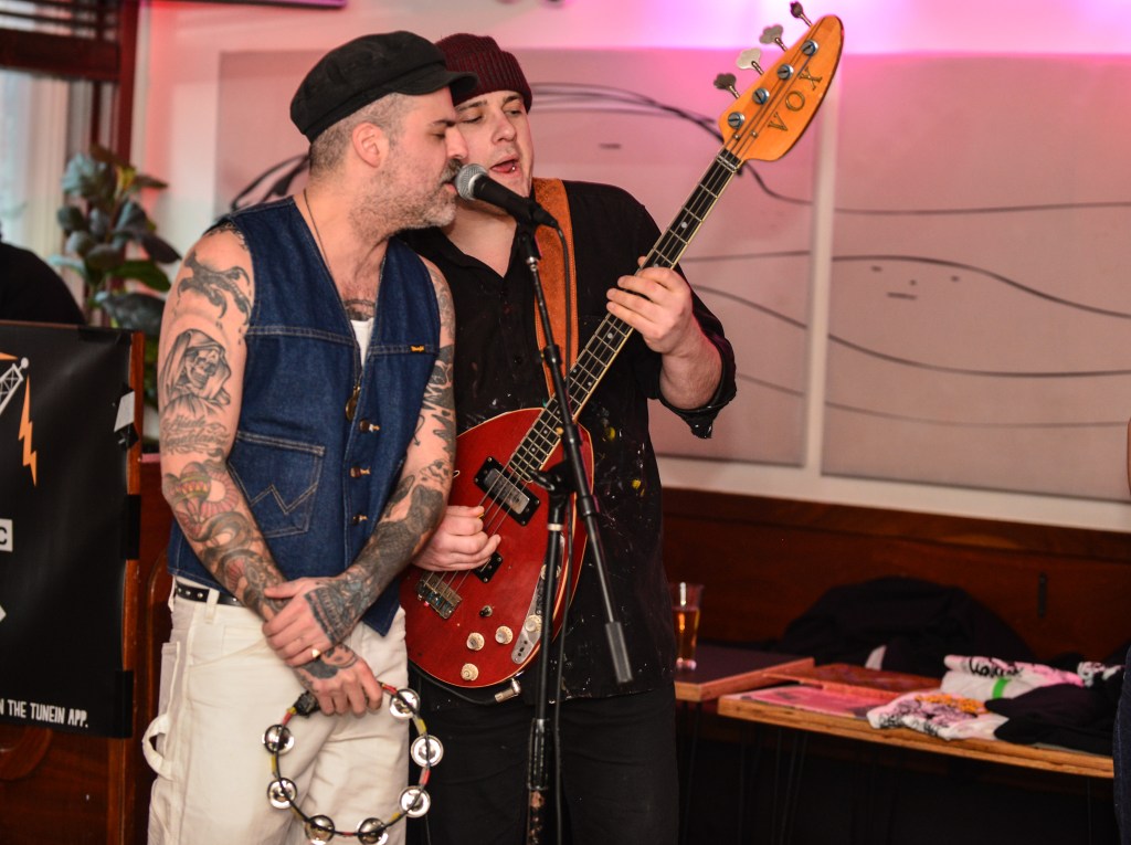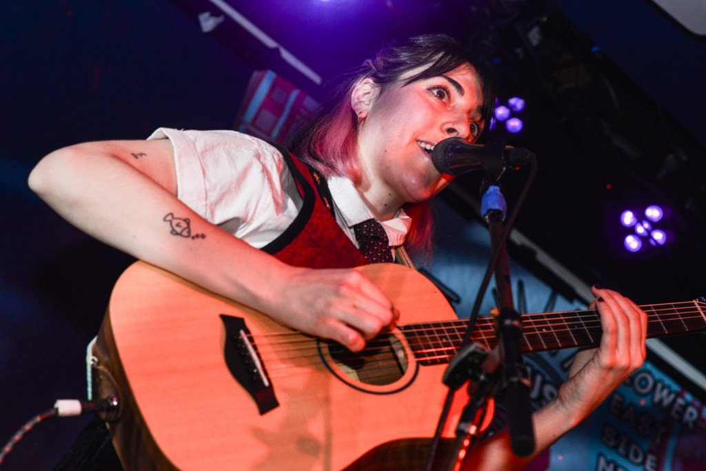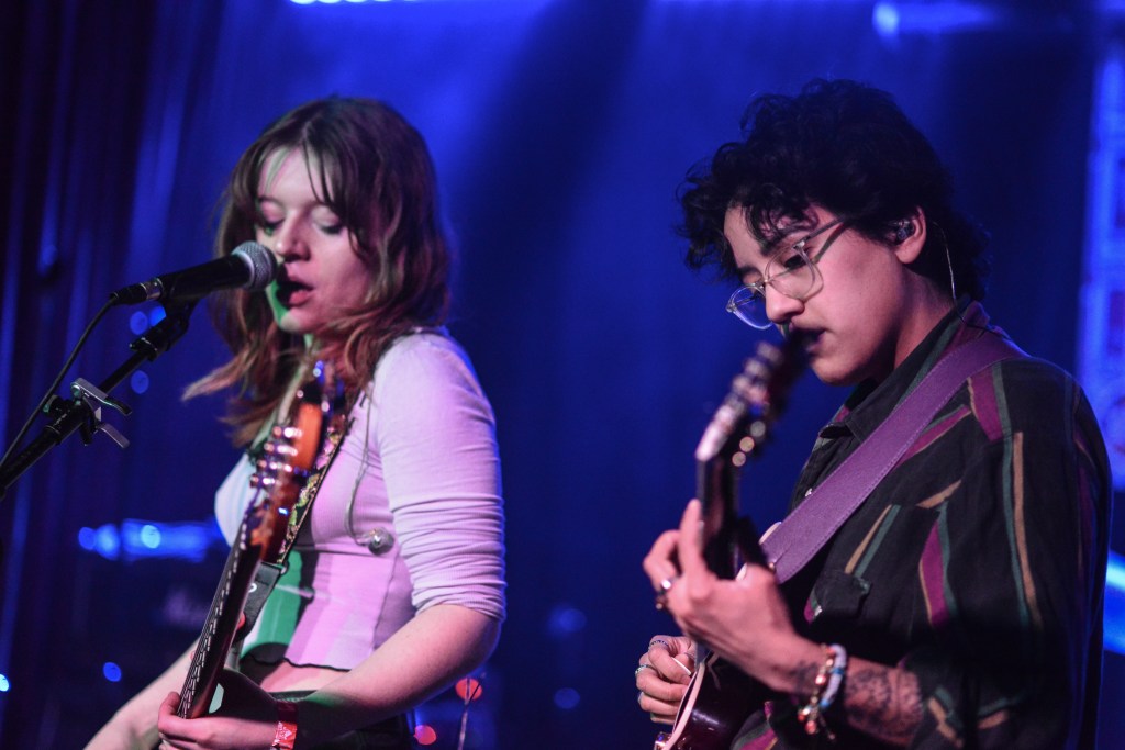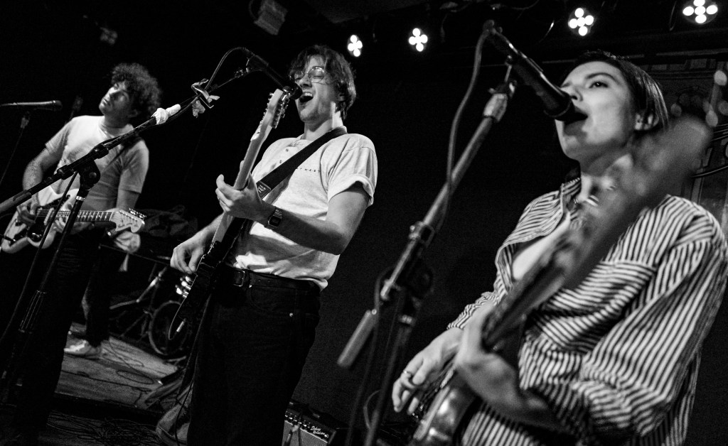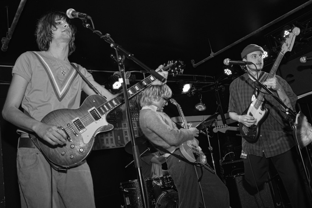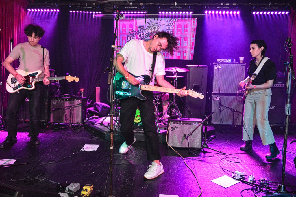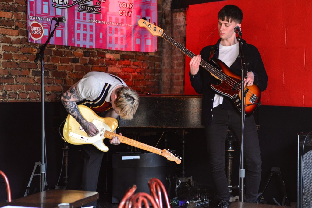 I would close out my Saturday with Ducks LTD, a jangly power pop kind of band out of Canada which I’ve been longing to catch for quite some time now but largely due to their being booked to play VERY late sets here in New York whenever they come around, I’ve missed. So seeing that they were playing a few sets at this year’s New Colossus brought a huge smile to this guy’s face. Ducks would prove not to disappoint at all. Ironically, with a new album, Harm’s Way having just been released, they opened up with “How Lonely Are You” and “Old Times” off of their previous album, Modern Fiction from 2021. Truth be told it wouldn’t be until the 5th song of their set before they would get to anything from the new album. None of which mattered to the ecstatic crowd which were eating up every crunchy note put forth from The Ducks. Enigmatic lead singer, Evan Lewis proves to be a great frontman with his energetic shimmying and unique nasally voice. Of course what would a classic power pop band be without pitch perfect harmonies and Lewis along with partner in crime Tom McGreevy delivered in spades. All in all their set proved to be a master class in the crunchy jangly power pop craft.