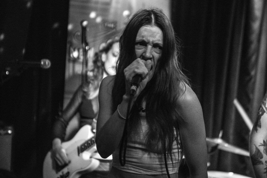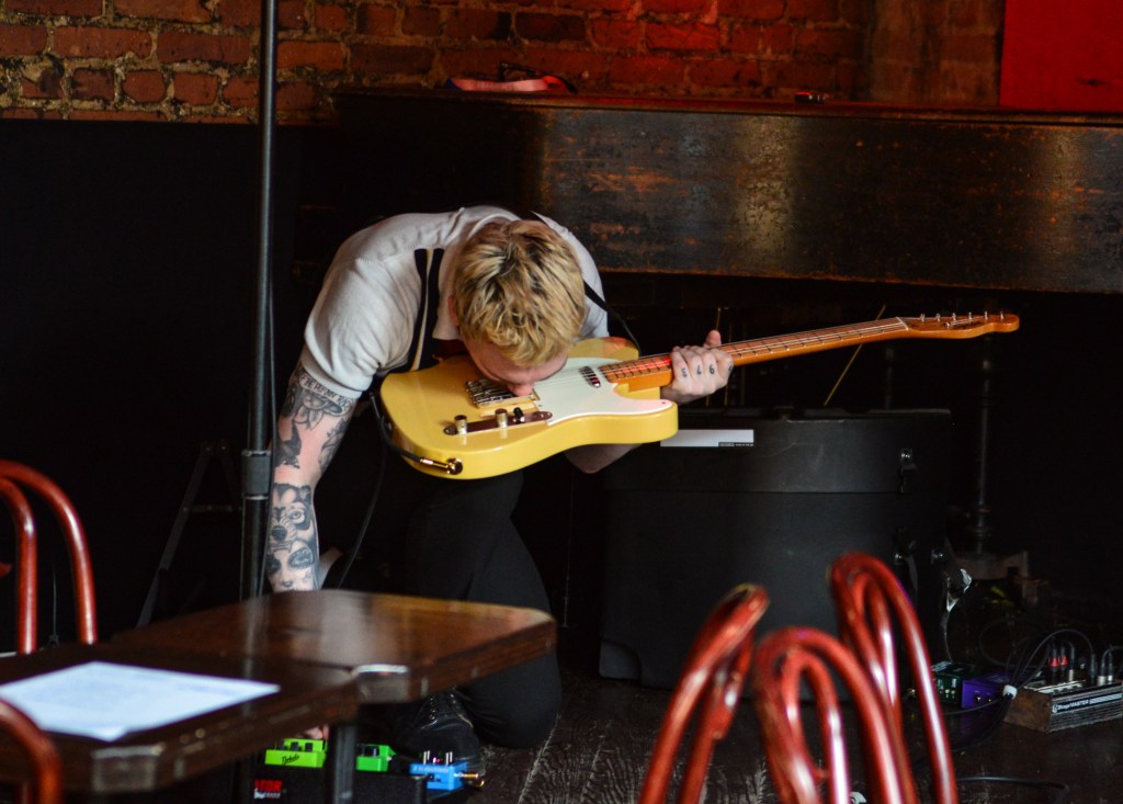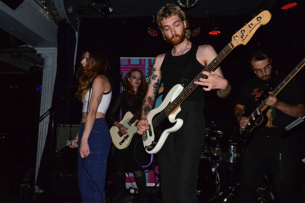 The other band from The UK which caught my attention on Thursday was Langkamer. Other than both being from England you’d be hard pressed to find any other similarities between these guys and Canned Pineapple. Langkamer, with their drummer Josh Jarman providing lead vocals, Langkamer clearly has listened and learned alot from Malkmus, Pavement, Silver Jews and all the other slack rockers of the 90’s and early 2000’s. I made a specific trip up to Heaven Can Wait especially to catch Langkamer and I was more than pleased with what I got to experience. Having formed as a band during the pandemic lockdown, Langkamer have only recently gotten their sea legs as far as playing together live is concerned. But with a dueling guitar attack coming from guitarists Ed Soles and Dan Anthony (both of whom take turns playing some slide), the band takes their slacker roots in a very southern direction, harkening back to the second wave of southern rock like Skynrd, Marshall Tucker and The Outlaws. Probably my favorite track from them was the bouncy hook heavy “Ritual” which starts off with a rollicking bass line beat very reminiscent of Orleans’ mid 70’s hit “Still The One”. And yet again, future plans for the weekend would have to be juggled in order to catch these guys at least one more time.