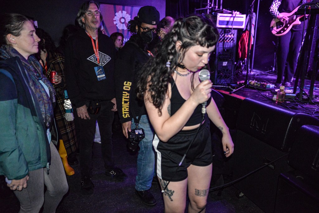 One of my biggest surprises as well as highlights of my week was the band Prewn from Western MA. I knew nothing about the band which is actually the stage moniker for Izzy Hagerup who put Prewn together as a post covid project. Prewn released its recorded debut last summer and even if I had listened to the LP prior to seeing the band on Saturday, I would not have been prepared for what lay in store. Izzy would proceed to present a set of extremely dark, at times disturbingly so guitar laden psychedelic indie pop. On the album Izzy’s vocal intonations come across as a dark gothic version of a band out of Muscle Shoals, AL from the early teens, The Bear. Live, however, she takes that sound and adds a little bit of Florence Welch to it and as such, combined with the heavy guitar brought way up front in the mix, we in the audience were treated to what was a mesmerizing dichotomy of beauty and disturbing. Prewn’s set was probably the most achingly powerful thing I witnessed all weekend.