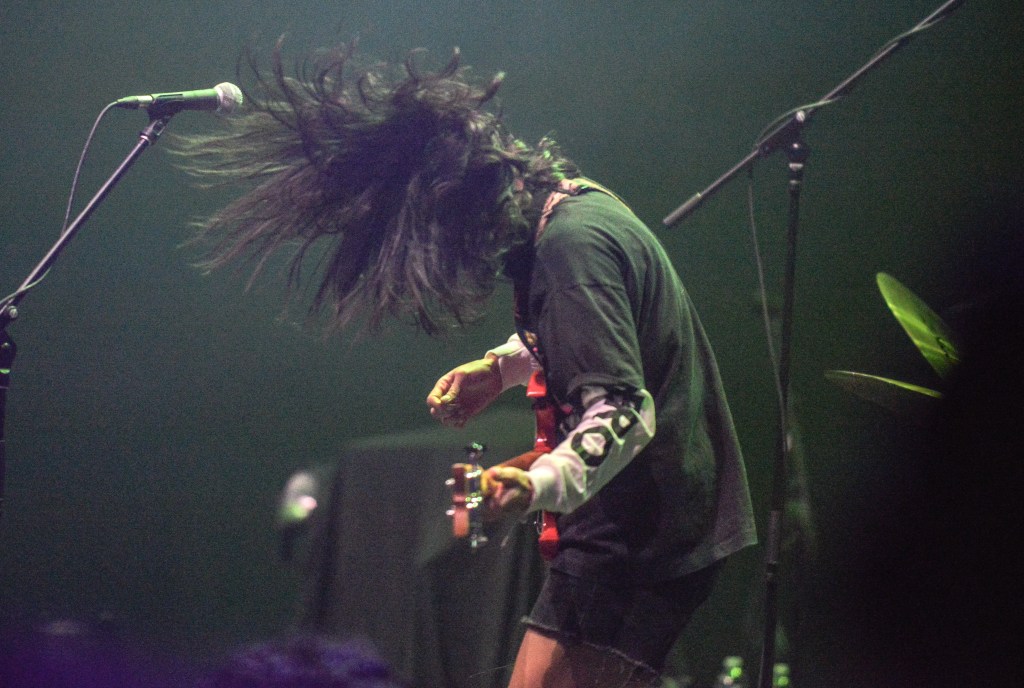 Guilhem – Guilhem was easily the surprise of the weekend for me. About a month ago I had begun listening to a Lost Evenings VII playlist that someone had made in order to get to know some of the lesser known acts that I would be seeing in Toronto. Anyway at one point, I’m listening and all of a sudden some New Age thing comes lilting out of my speakers and my initial reaction was WTF!?! And then I saw the clashfinder for the weekend and discovered that this new age artist was playing on the NA Stage in between The OBGM’s and The Dirty Nil on HARD CORE night!!! What the hell is going on was my first thought. Anyway, I needed to go to the bathroom after OBGM’s anyway and the men’s room was in the same room as the NA stage so I figured I would give Guilhem what I figured would be a quick listen. Boy was I shocked. As it turns out, who would have thought there were TWO artists named Guilhem on this planet and it turned out that whoever made the playlist put the wrong one on the LEVII playlist. What we got on stage at Nick Alexander was a humorous self-deprecating guitar slinging songwriter that I immediately described as “what Jeff Rosenstock would sound like if he was a French Canadian from Montreal rather than a Long Island Jew from Brooklyn”. I love Guilhem and really hope that he can make his way down Stateside in the near future.