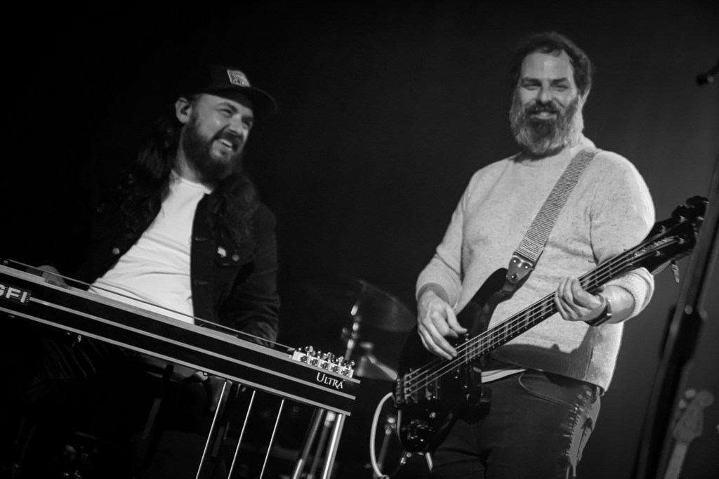In any event, night two kicked off with “Only Time Will Tell” and while the version played the night before was somewhat subdued, on Saturday Kneiser and crew played it with a sense of urgency that was missing the previous night. Right away we all could tell that whatever nervousness might have overtaken the band the night before was a thing of the past. Each and everyone one of them up on the stage played and sang like they had a fire burning deep in their souls. This became immediately apparent when Bingham started off the second song of the evening with his scorching bass intro to “Trouble Won’t Last Always”. This would be a precursor to what would lie in store for the evening from Mr. Barnes. As I was situated pretty much right in front of him, I had a perfect viewing perspective of his left hand flying up and down his fretboard with the grace of a monarch butterfly moving from flower to flower all while his right hand plucked away at those very same bass strings like they were flower petals. And speaking of pedals (see what I did there?) late in the set, Bing would start playing through some pedal that created such wild distortion that I swore that he’d blown out his amp…but au contraire, it was a pure premeditated polyphony of noise that sounded perfect.